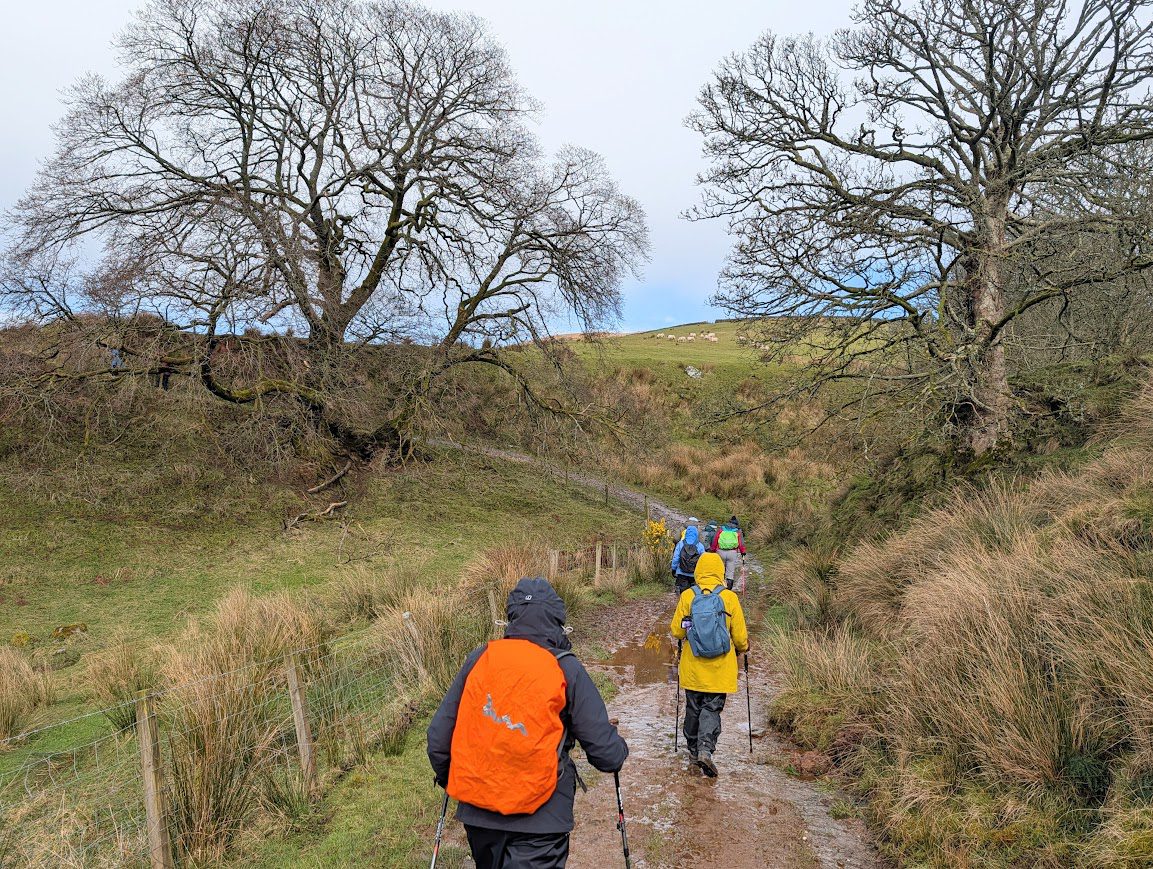 From here on, the brilliant underfoot conditions we’d become used to got immediately worse: muddy, waterlogged farm tracks, followed by boggy moorland, helped by some useful sections of boardwalk. Some would call it exciting! This was a really scenic and remote-feeling stage of the walk, and for some the most challenging. Some photos below…